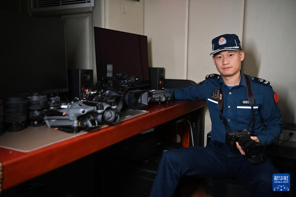 2月11日,中国海警万山舰执法员邱灿辉在进行维权取证训练。