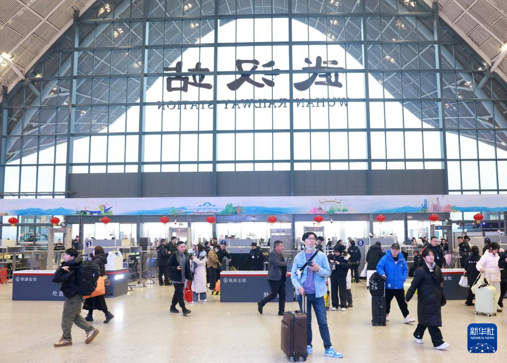 2月15日,旅客在湖北省武汉站乘车出行。