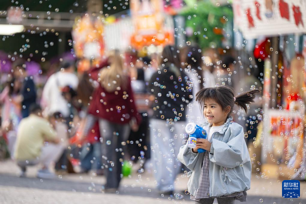 2月15日,小朋友在澳门塔石广场年宵市场游玩。
