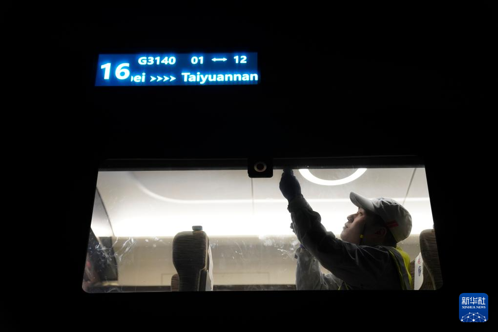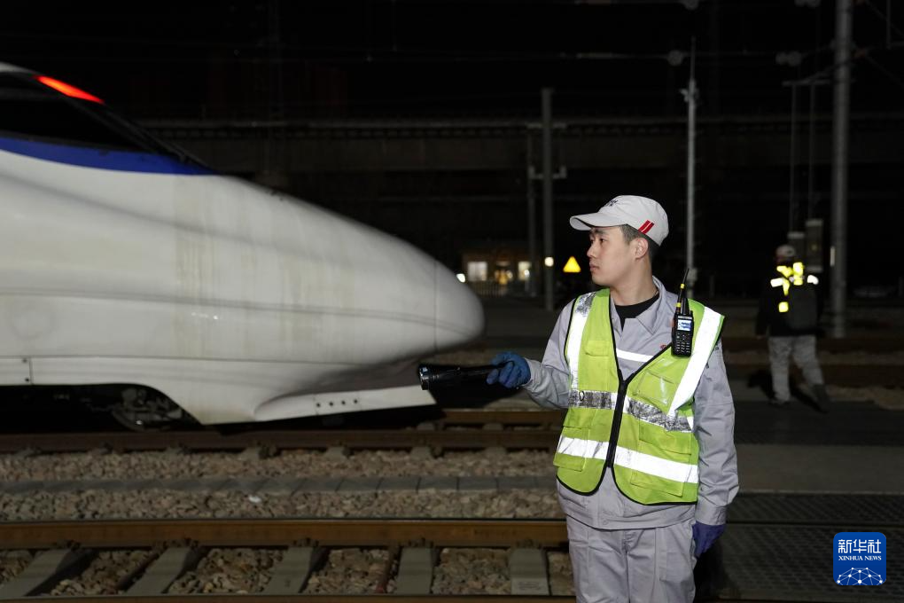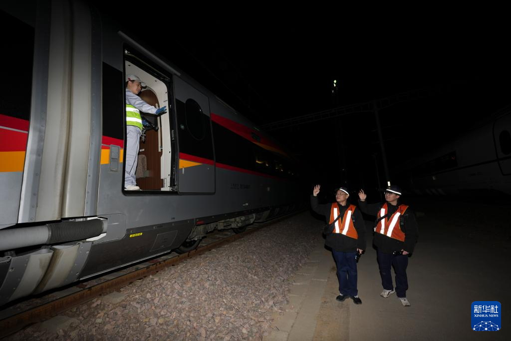 当夜幕低垂,列车“安睡”,“95后”小伙鄂明迎来了一天中最忙碌的时刻。
