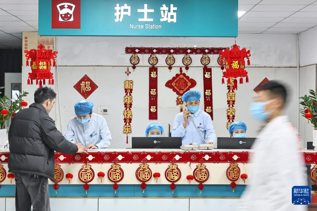 2月16日,在浙江省嘉兴市南湖区,海警医院急诊医学科护士为患者服务。