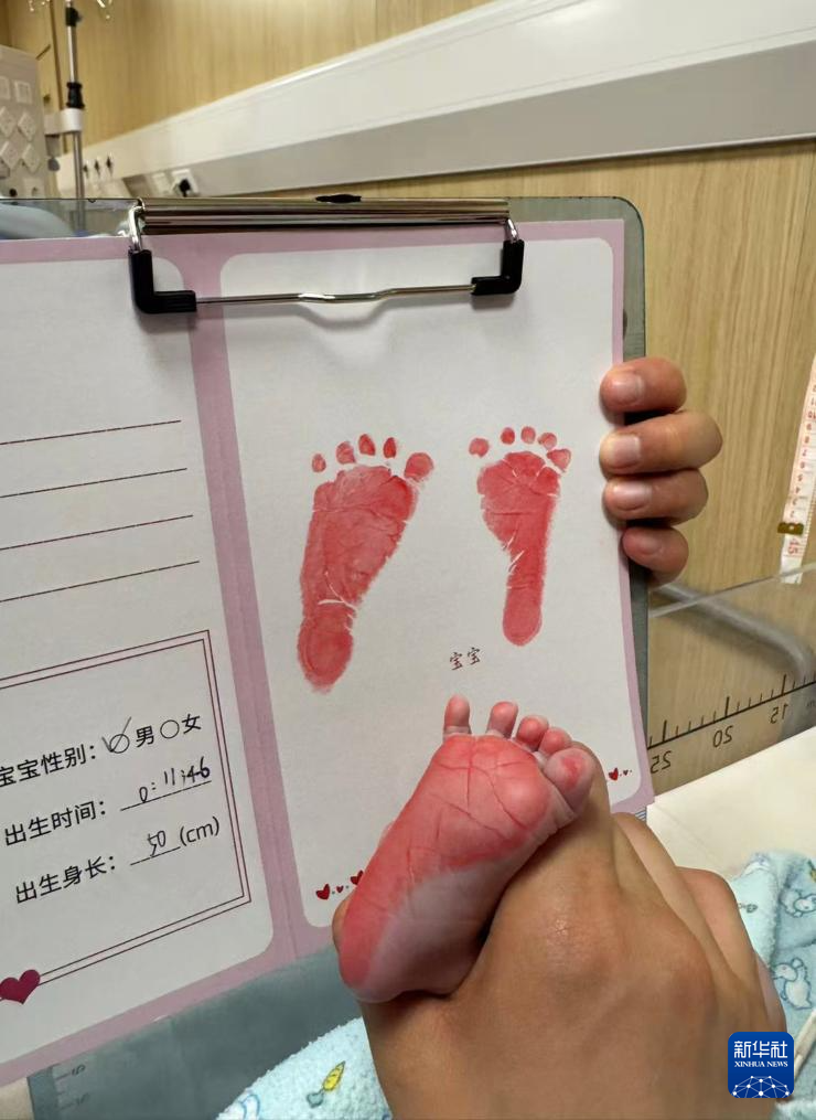 2月17日,在天津市中心妇产科医院,医护人员为新生儿留下脚印。