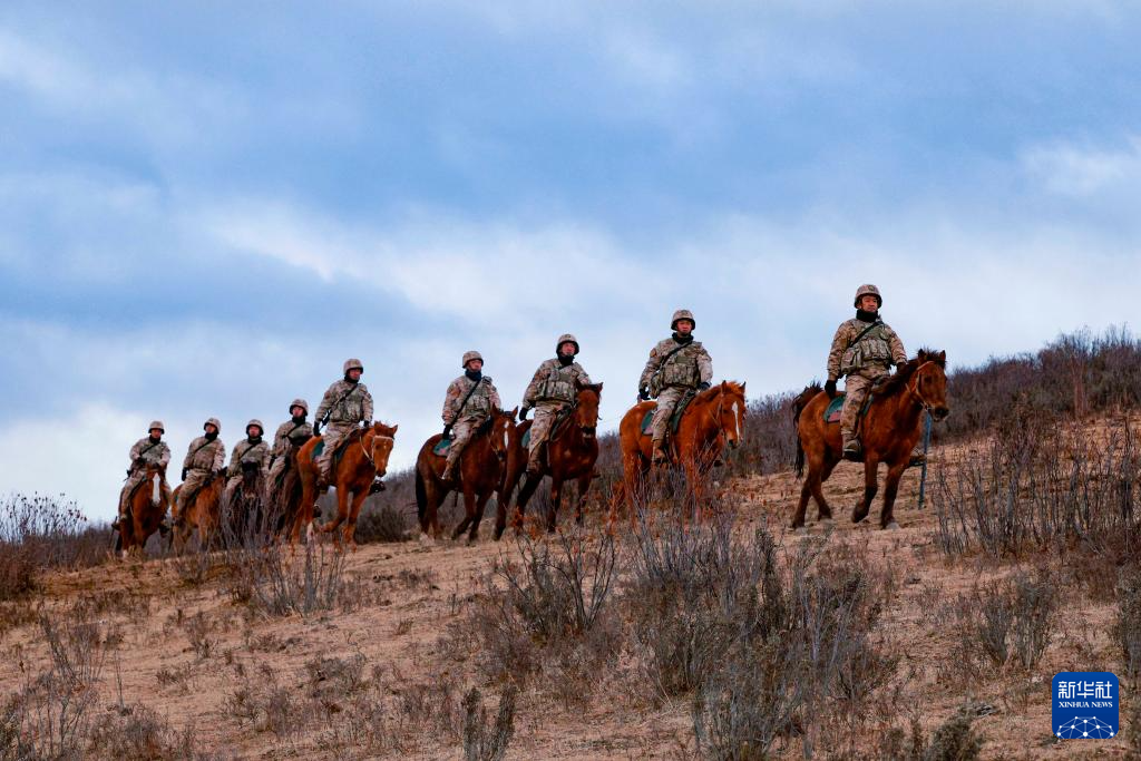 2月15日,陆军第76集团军某旅玉树独立骑兵连官兵在海拔4000余米的巴塘草原巡逻。