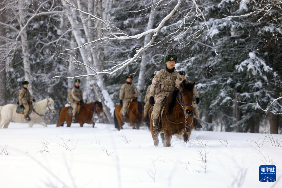2月15日,驻守在祖国西北边陲阿尔泰山深处的新疆军区扎玛纳什边防连官兵冒着严寒执行巡逻任务。