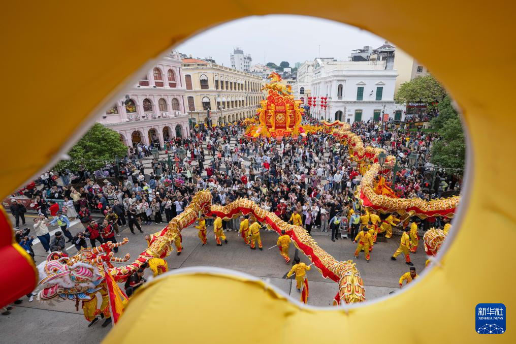 农历大年初一,澳门特区旅游局在大三巴牌坊及议事亭前地举办“欢乐春节——2026年龙腾舞跃贺新春”社区巡演活动,并安排长238米的大金龙在澳门多个主要景区巡游,营造浓浓节日氛围。