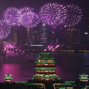大年初一,2026年南昌市迎春烟花晚会在江西省南昌市赣江老官洲水域举办。此次烟花晚会以“赣水欢腾 马跃新春”为主题,呈现出“楼体+江舟”的立体燃放景观,为市民和游客带来一场视觉盛宴。