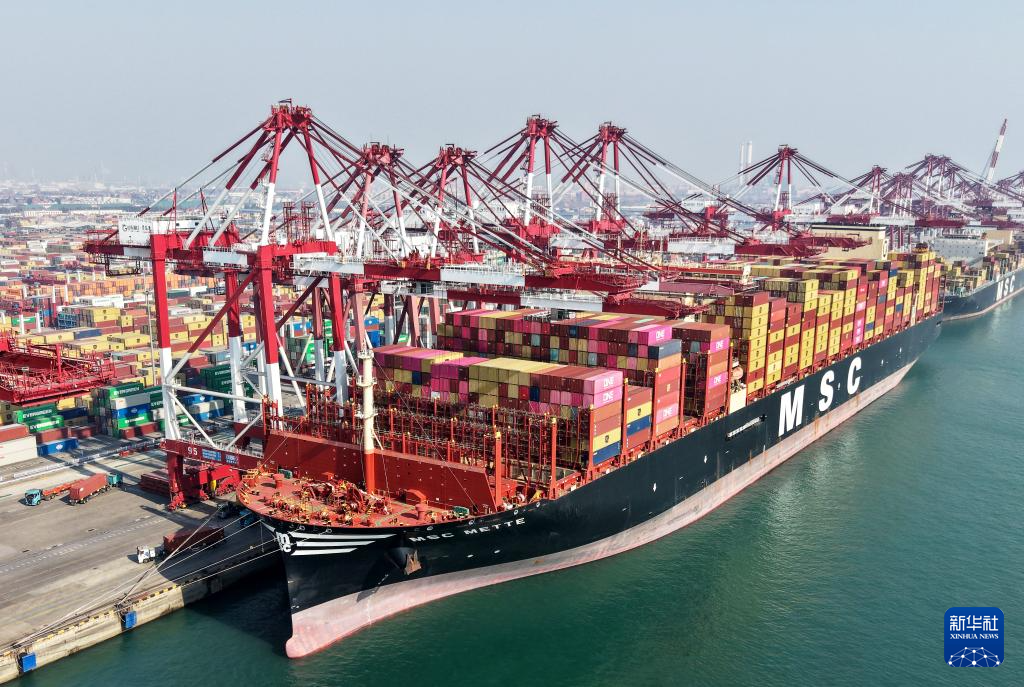 2月18日农历大年初二,山东港口青岛港前湾集装箱码头泊位饱满、高效运行,来自欧洲、地中海、东南亚、中南美航线的20余条集装箱船舶集中到港,载箱量超过8000标准箱的船舶达到8条。其中,399米的“地中海梅特”轮在港装卸量高达2.4万标箱,创春节会战单船作业箱量新高。