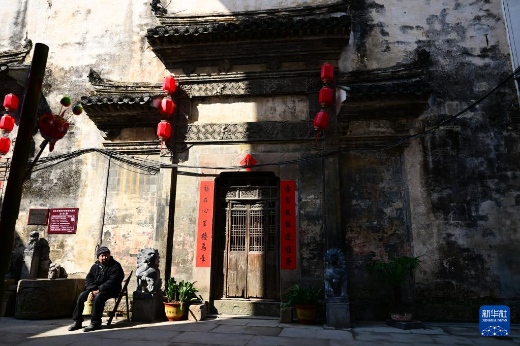 2月8日,村民在瞻淇村晒太阳。