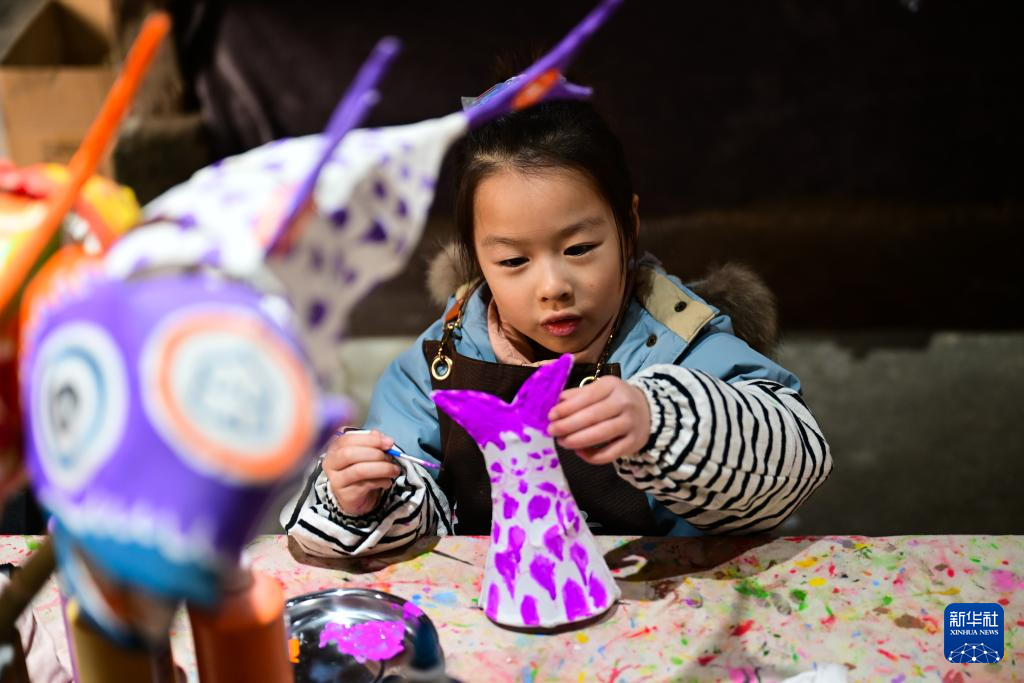 2月8日,小朋友在瞻淇村体验鱼灯制作。