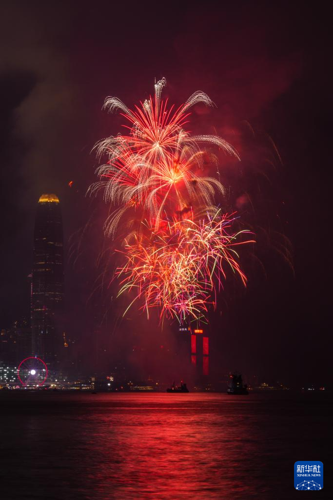 2月18日,香港举办农历新年烟花汇演,欢庆新春佳节。