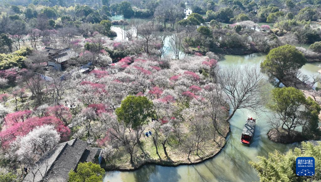 西溪湿地盛放的梅花(2月18日摄,无人机照片)。