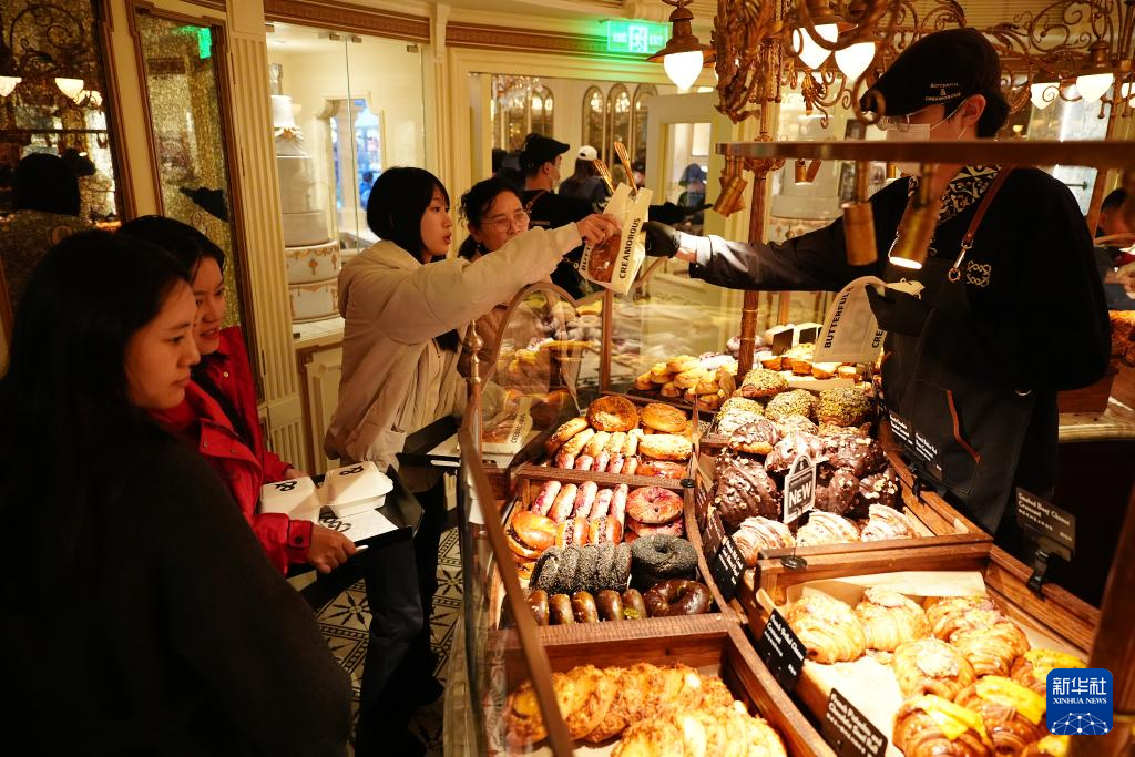 2月17日,游客在西安万象城一家烘焙店内选购。