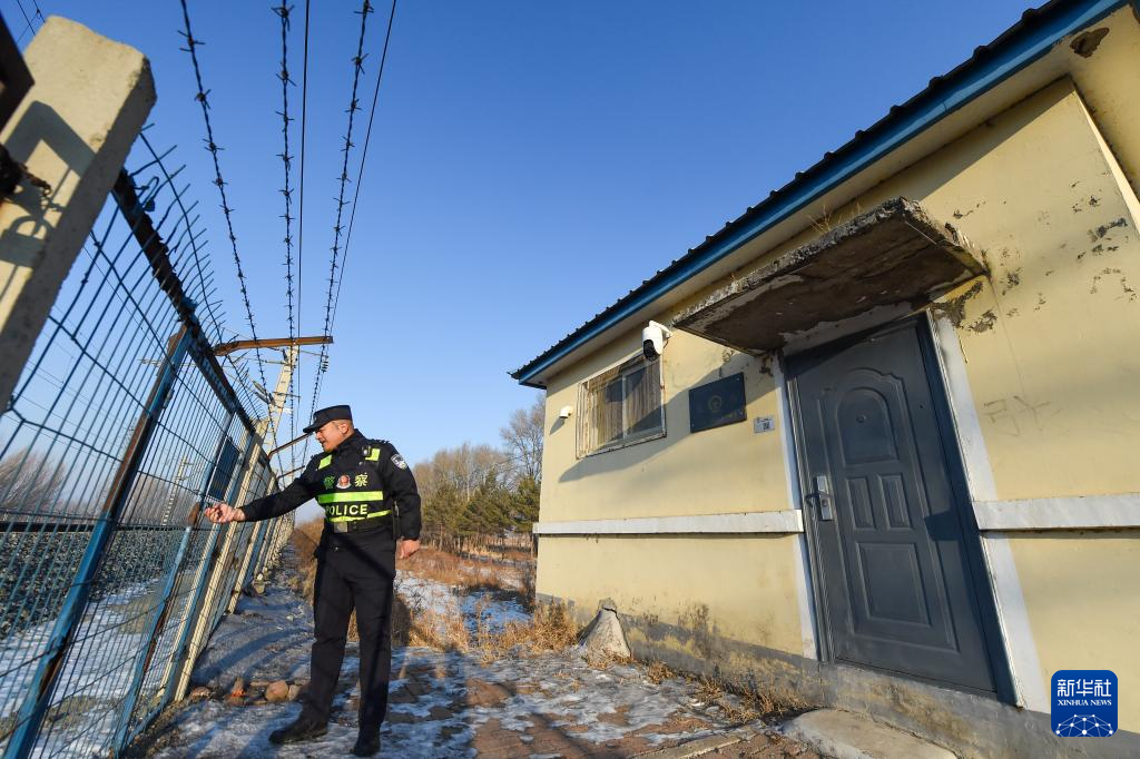 2月18日,长春铁路公安处德惠站派出所达家沟警务区民警徐俊武检查铁路防护设施。