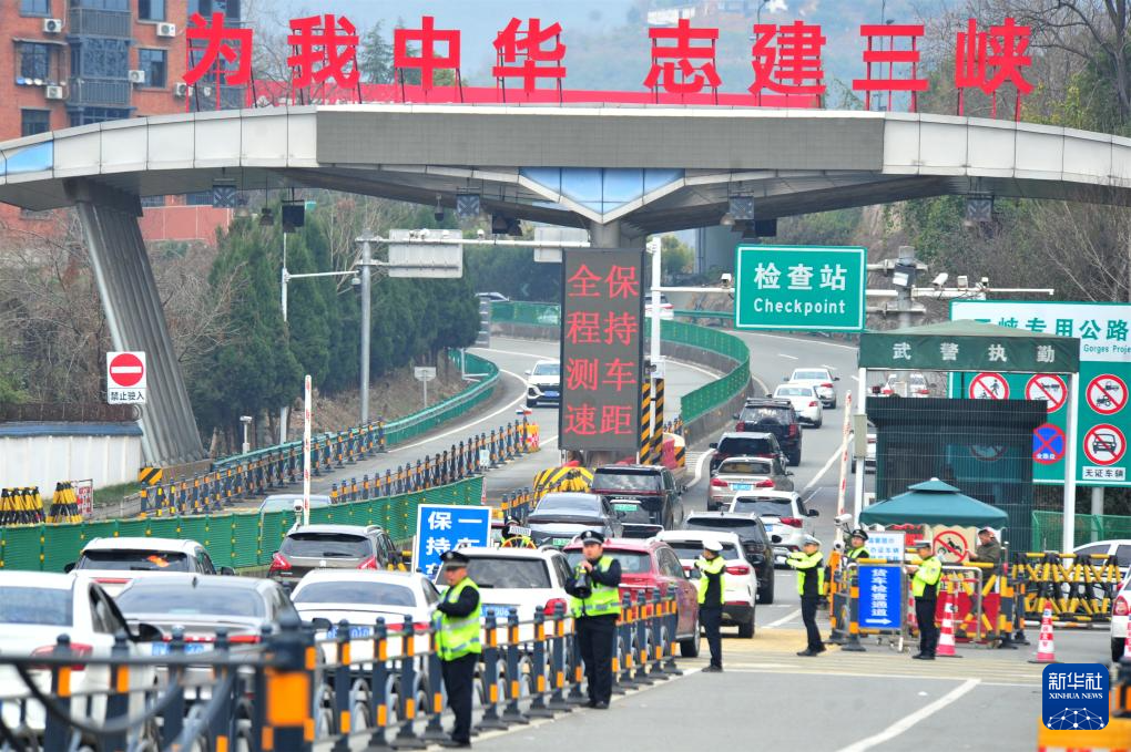 2月19日,车辆在民警的指挥下有序通过湖北省宜昌市夷陵区冯家湾检查站路段。