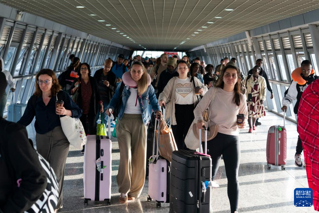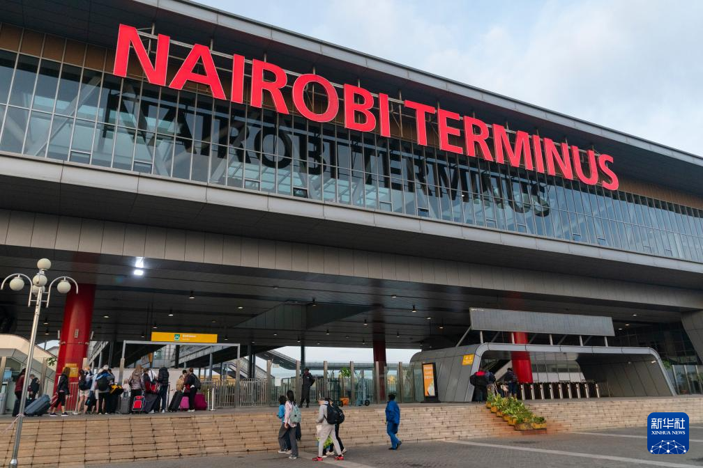 2月17日,在肯尼亚首都内罗毕的蒙内铁路内罗毕站,旅客进站乘车。