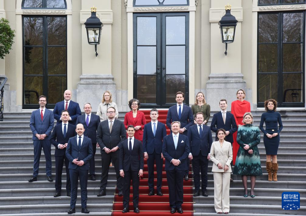 由六六民主党领导人罗布·耶滕担任首相的荷兰新内阁23日在海牙向国王威廉-亚历山大宣誓就职。