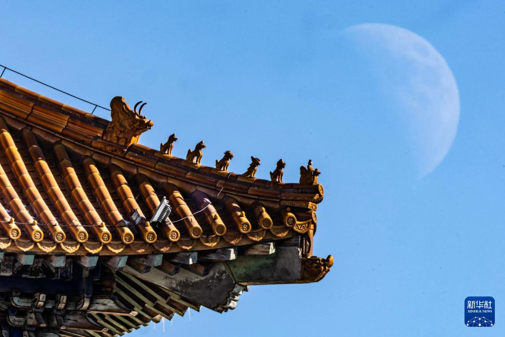 2月24日在黑龙江省哈尔滨市拍摄的月亮(无人机照片)。