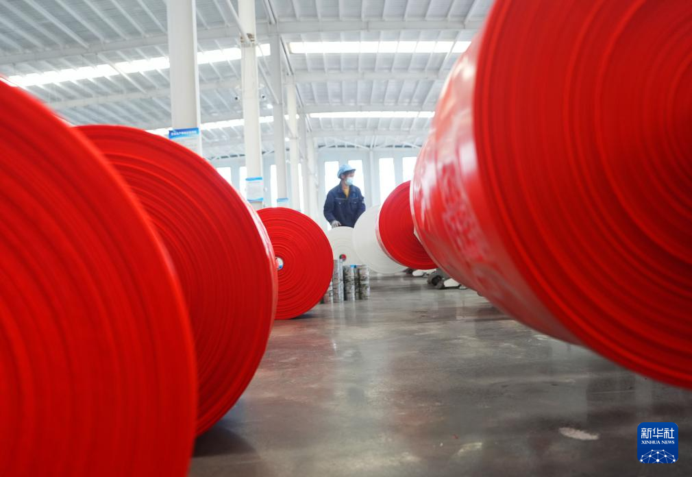 2月24日,在湖南省衡山县衡山高新技术产业开发区,荣宸塑业有限公司的员工在生产线上工作。
