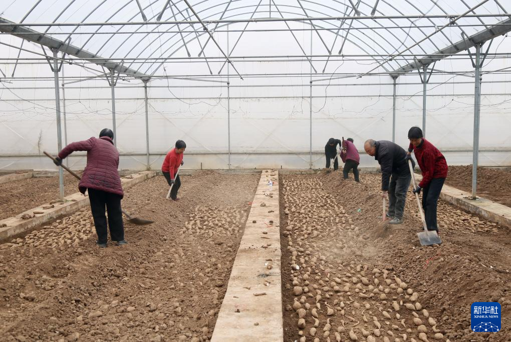 2月25日,河南省洛阳市汝阳县刘店镇沙坪村村民在温棚内培育优质红薯苗。