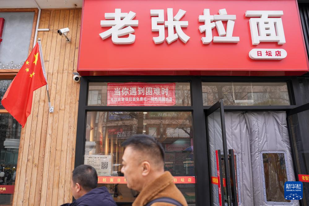 最近,北京日坛公园附近的老张拉面馆受到不少网友关注。这家门脸不大的面馆并不起眼,往来的人们却频频被店门上的字所吸引——“当你遇到困难时,可以在老张拉面免费吃一碗热腾腾的面。”