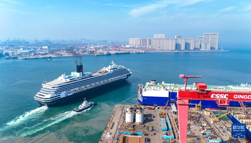2月28日,“理想”号邮轮完成坞修及保养后准备驶离(无人机照片)。