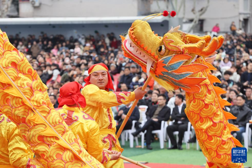 2月27日,村民在湖北省宣恩县高罗镇歌乐城社区进行舞龙表演。