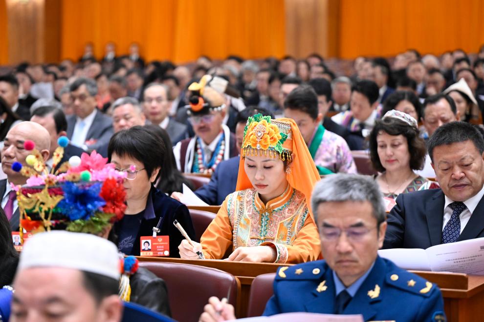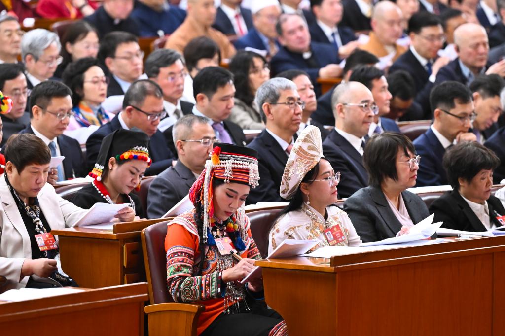 3月4日下午,中国人民政治协商会议第十四届全国委员会第四次会议在北京人民大会堂开幕。这是记者在会场拍摄。