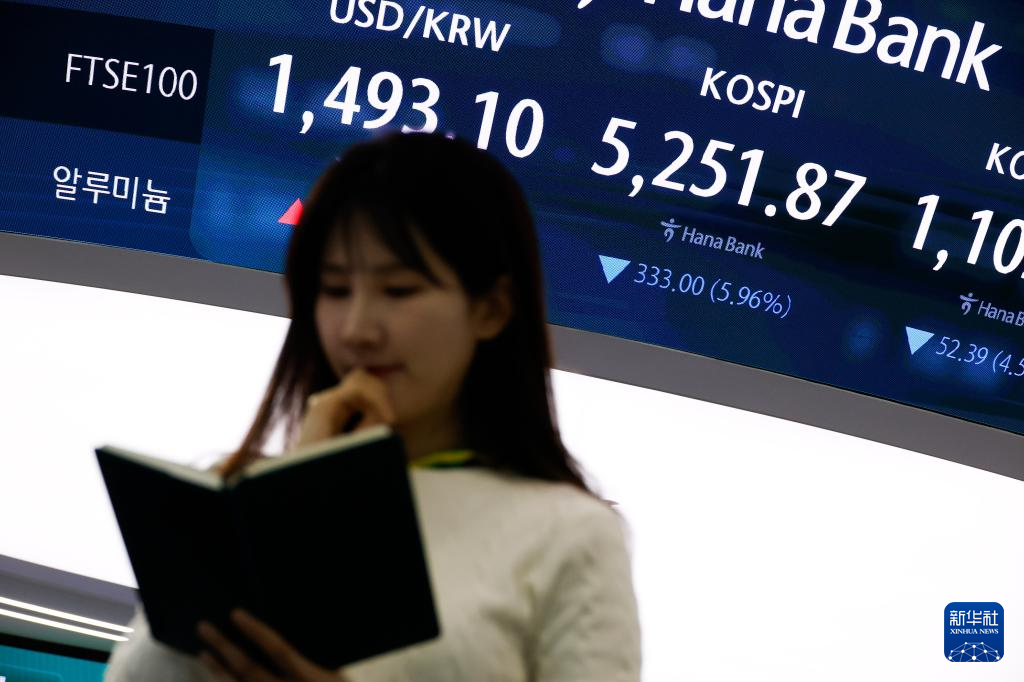 这是3月9日在韩国首尔一家银行拍摄的股指显示屏。