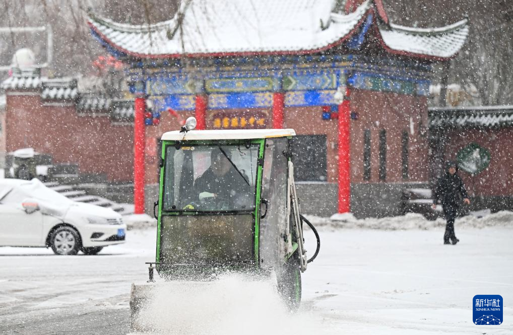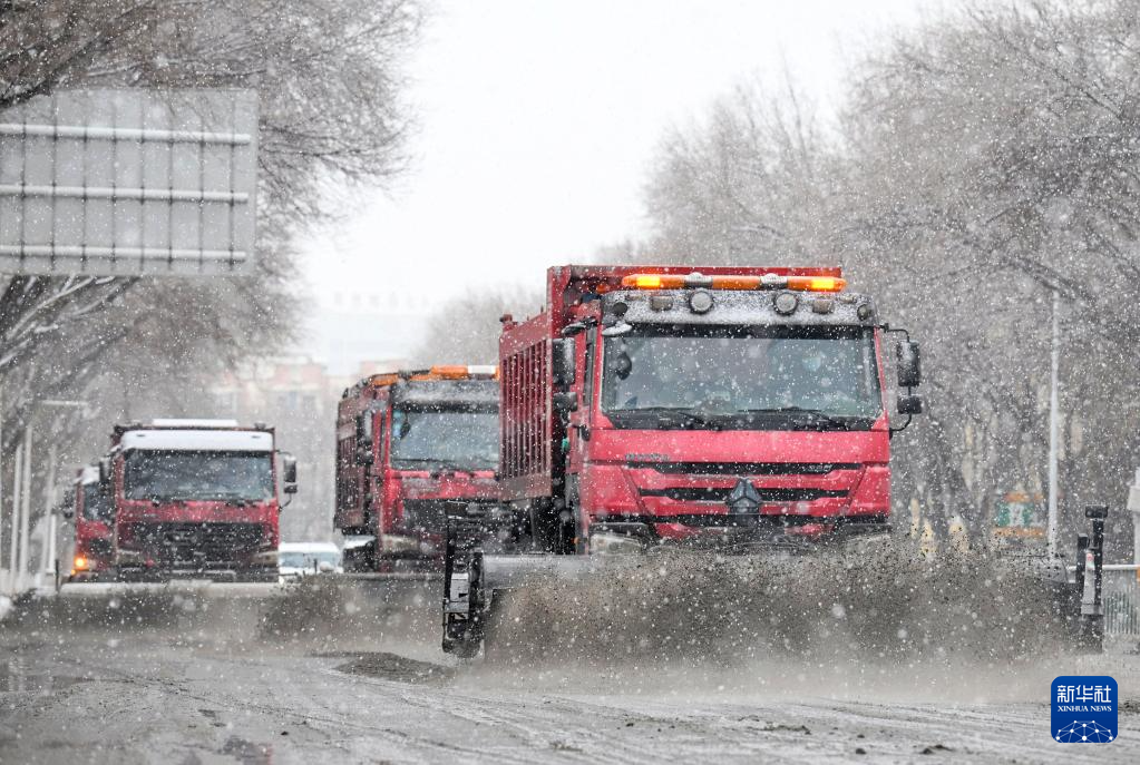 3月11日,清雪车辆在新疆昌吉市道路上除雪。