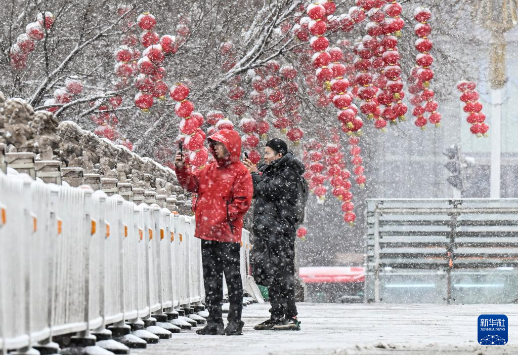 3月11日,市民在新疆乌鲁木齐市西大桥上拍摄雪景。