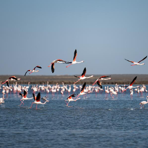 近日,大批火烈鸟在卡拉科尔湖停驻。它们在此停留一段时间,以恢复体力继续春季迁徙。