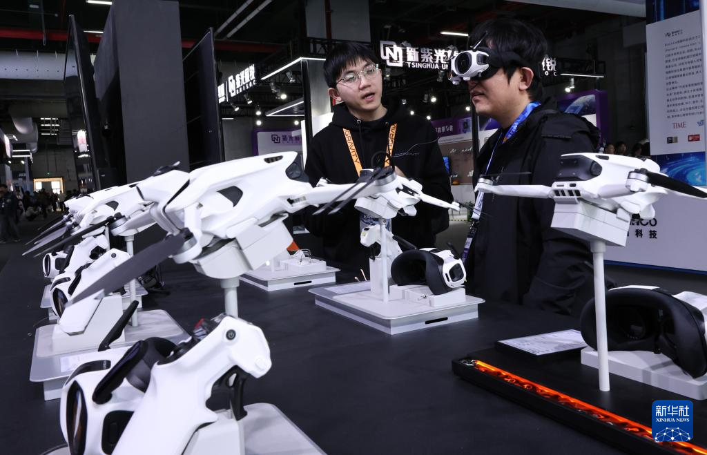 3月12日,在上海新国际博览中心追觅科技展位脑机接口展台,工作人员演示通过脑电波操作无人机。