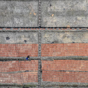 3月12日,在岳阳市岳阳县筻口镇丰瑞农机专业合作社,农民在田间摆放早稻秧盘(无人机照片)。