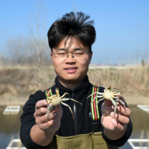 今年32岁的朱彩胜曾是一名软件性能测试工程师,2020年他辞去工作返乡创业,和父亲一起养殖螃蟹。