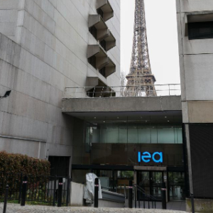 这是3月13日在法国巴黎拍摄的国际能源署标识。