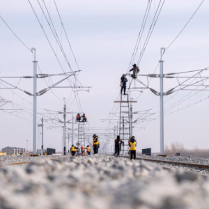 在哈伊高铁绥化南站施工现场,来自中铁武汉电气化局的工人克服低温天气,全力推进哈伊高铁“四电”工程建设(3月13日摄)。哈伊高铁是我国“八纵八横”高铁网京哈-京港澳通道的延长线,起自黑龙江省哈尔滨市,途经绥化市,终至伊春市。