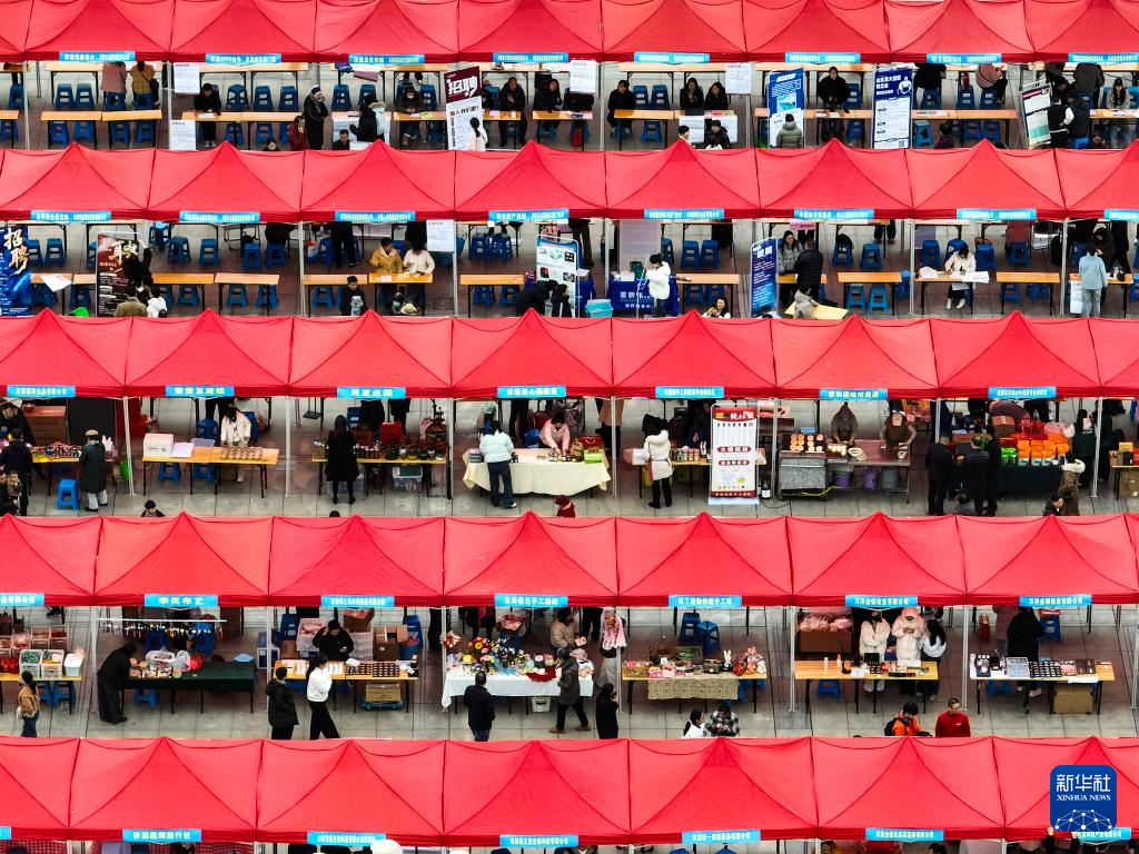 河南省济源市女性专场招聘会现场(3月8日摄,无人机照片)。