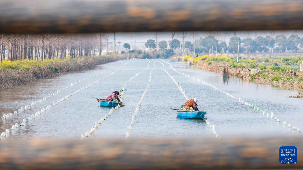 江苏泗洪:初春种蚌忙-新华网