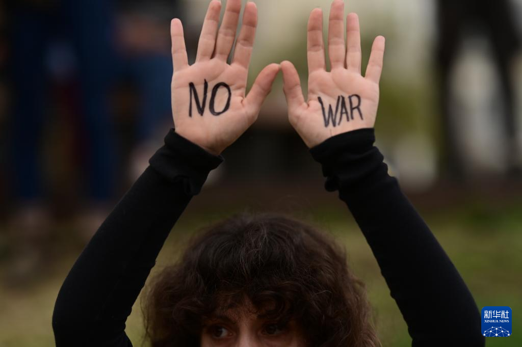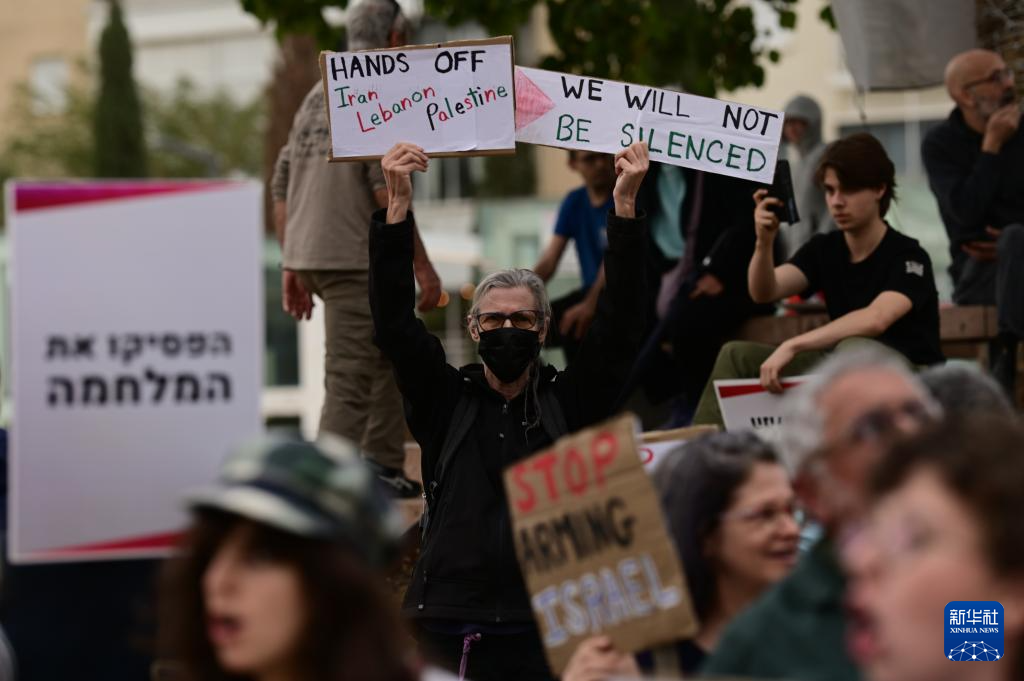 当日,人们在特拉维夫一处广场举行集会,抗议美国和以色列军事打击伊朗,要求美以停止一切战争行为。