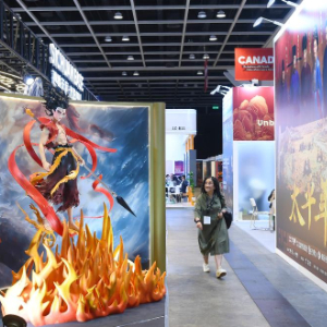 3月17日,参展商在香港会展中心广东馆推介影视产品。新华社记者 陈铎 摄