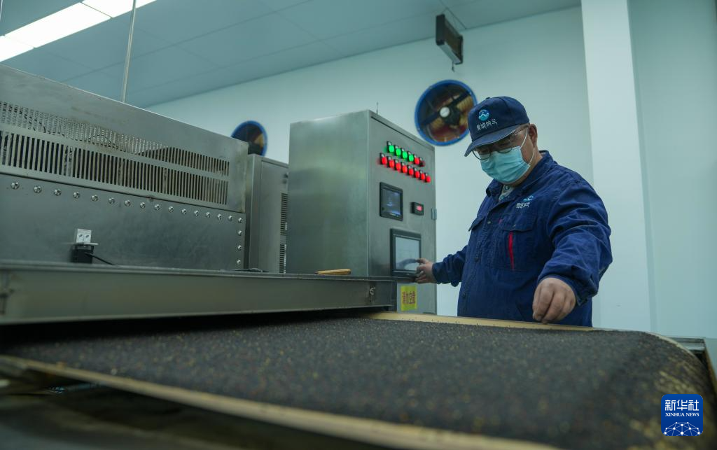 西藏山南市扎囊县重点招商引资企业——西藏纳兰生态产业有限公司工作人员操作微波烘烤设备制作食用油(3月17日摄)。