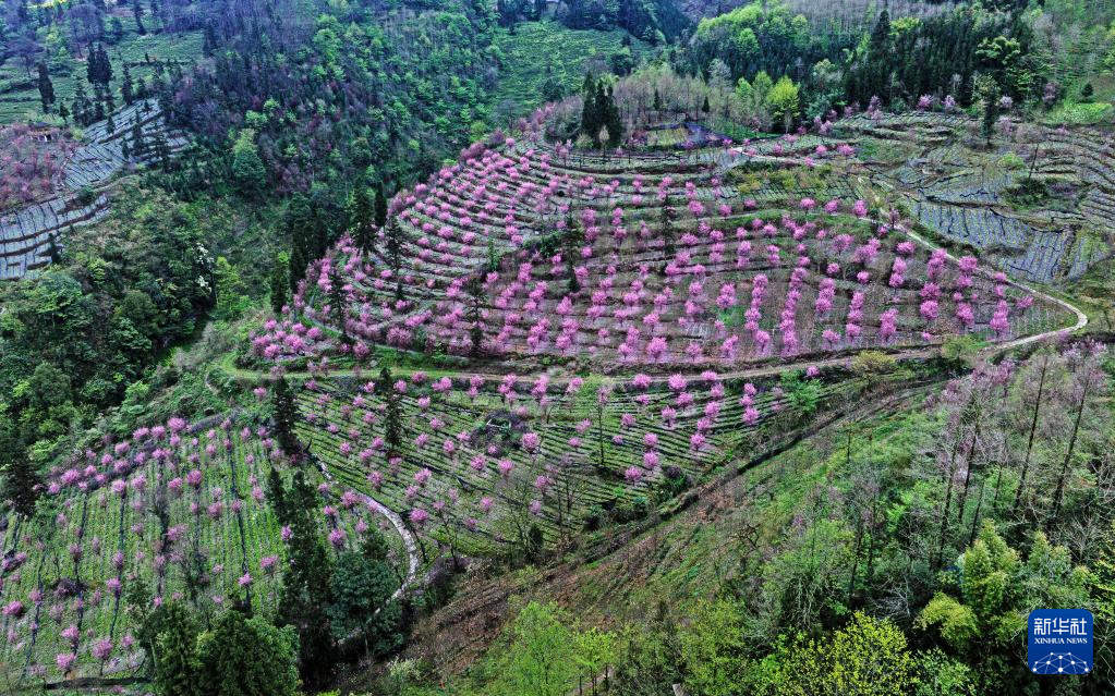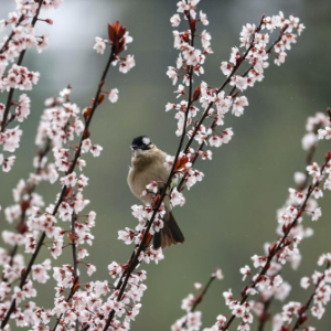 3月16日,小鸟在贵州省铜仁市玉屏侗族自治县皂角坪街道茅坪村的花间觅食。