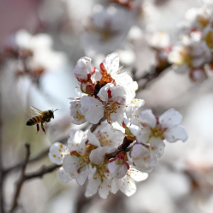 3月20日在新疆吐鲁番市托克逊县南湖杏花村拍摄的杏花。