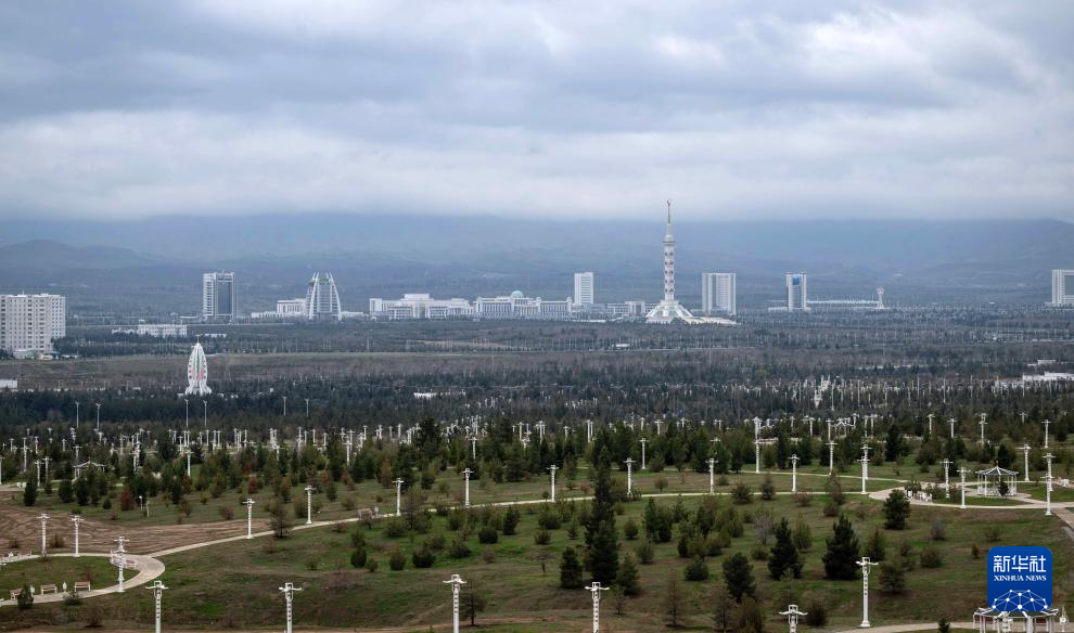 这是3月18日拍摄的土库曼斯坦首都阿什哈巴德城市风光。