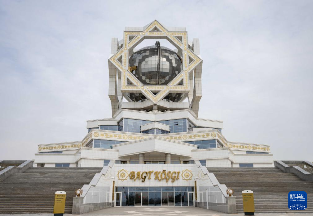 这是3月16日在土库曼斯坦首都阿什哈巴德拍摄的幸福宫。