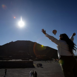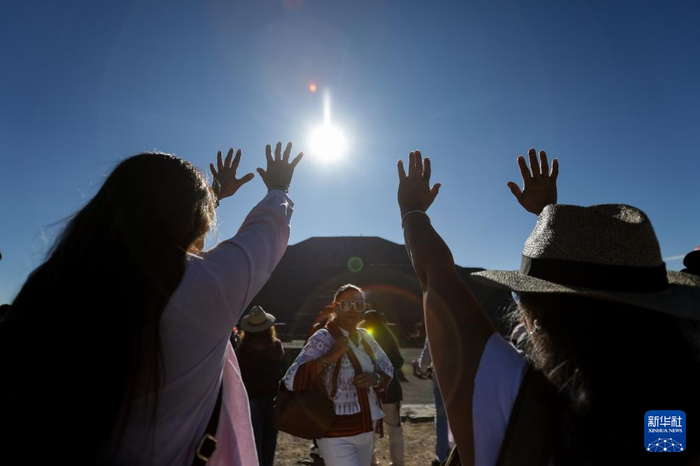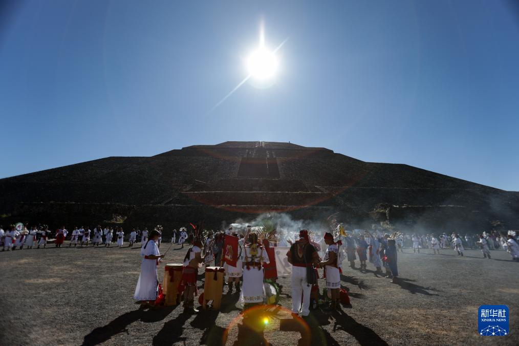 当日,迎接春分的活动在墨西哥特奥蒂瓦坎日月金字塔举办,人们沐浴日光、汲取能量。