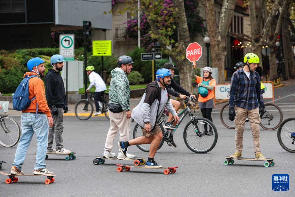 为推广绿色出行和健康生活理念,智利首都圣地亚哥市区的多条街道在每周日9时至14时对机动车封闭,方便人们进行骑行、跑步等活动。