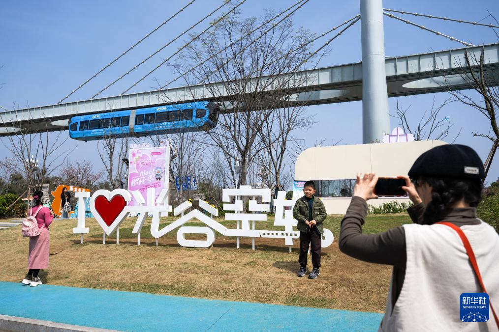 3月23日,游客乘坐空轨列车游览。