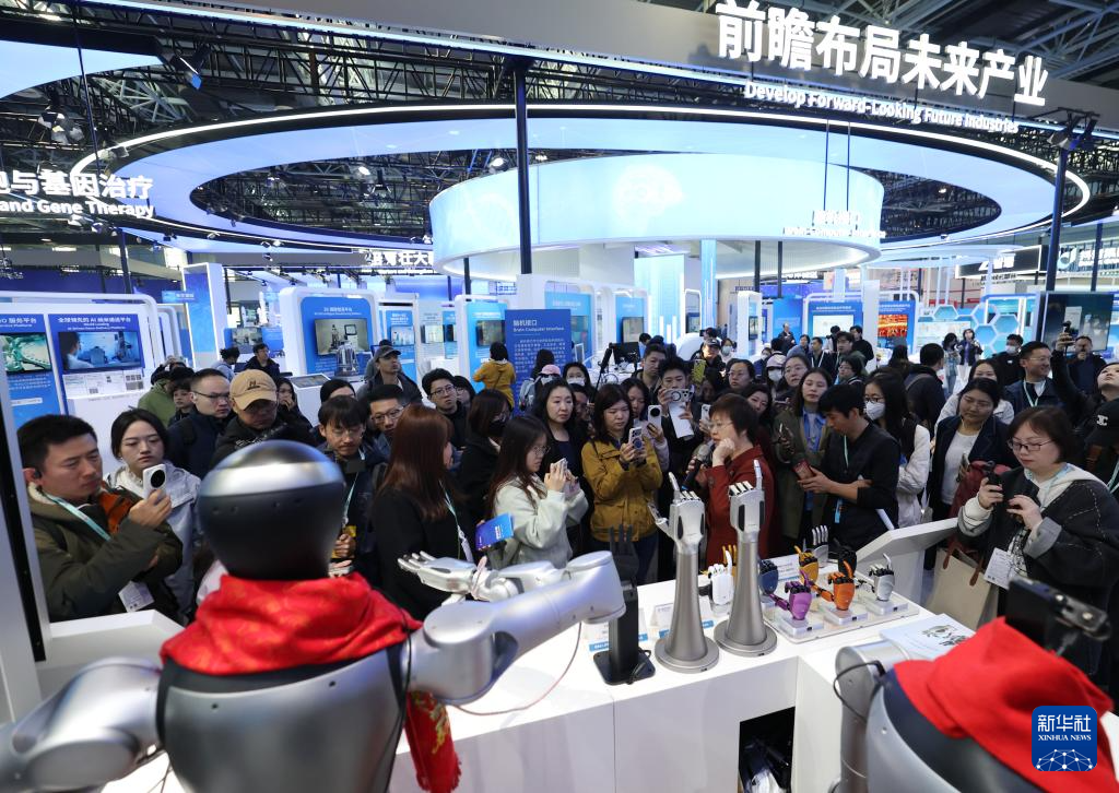 3月24日,在中关村论坛年会新闻中心内,一台机器人向观众招手。