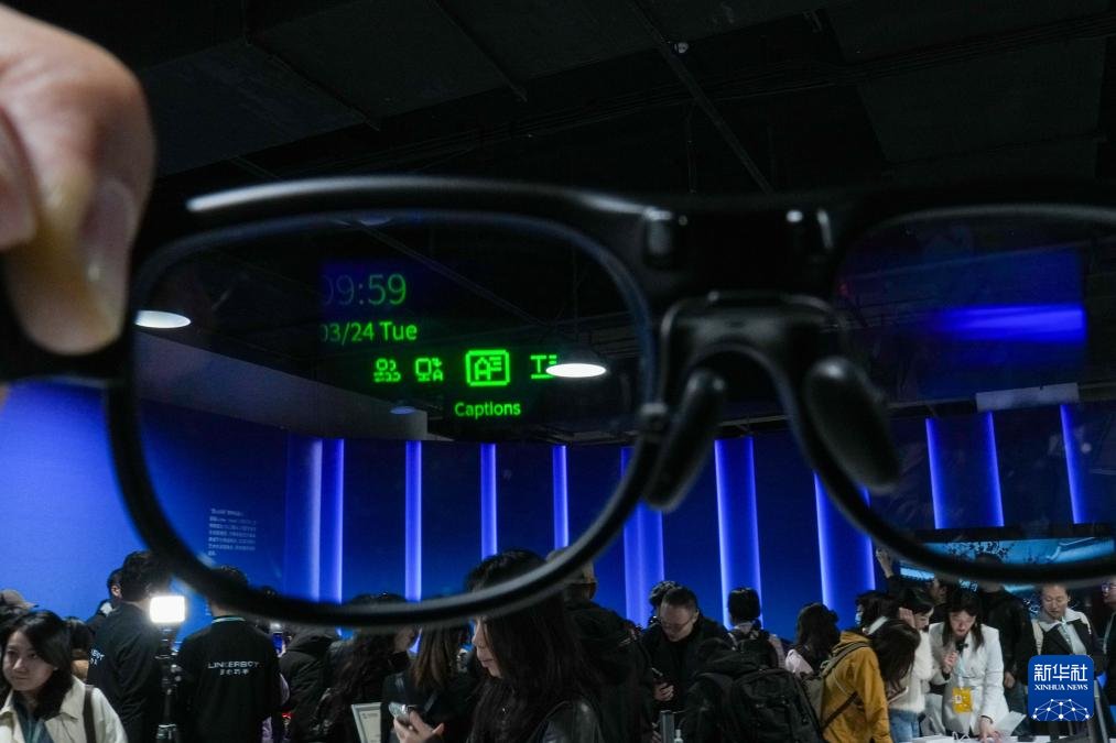 3月24日,在中关村论坛年会新闻中心内拍摄的一款AR翻译眼镜。